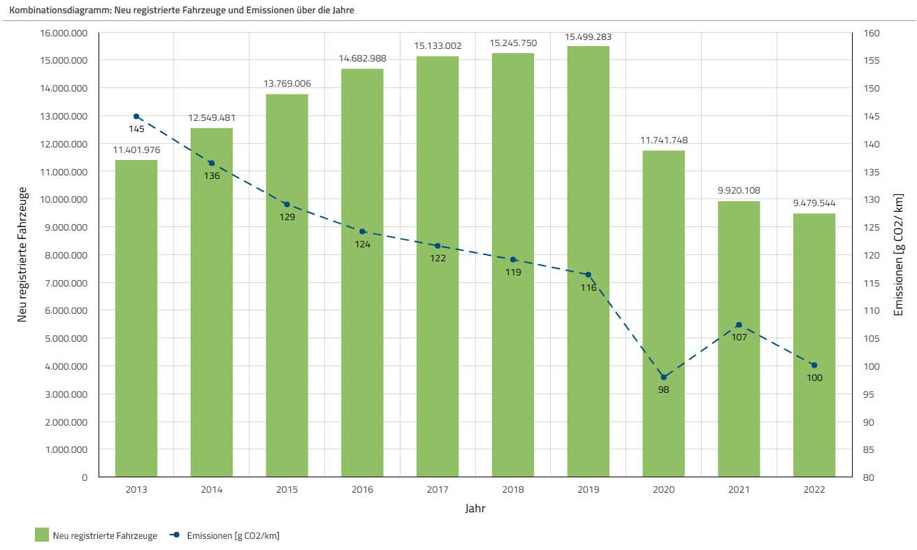 - von Emissionen und neuregistrierten Fahrzeugen über die Jahre