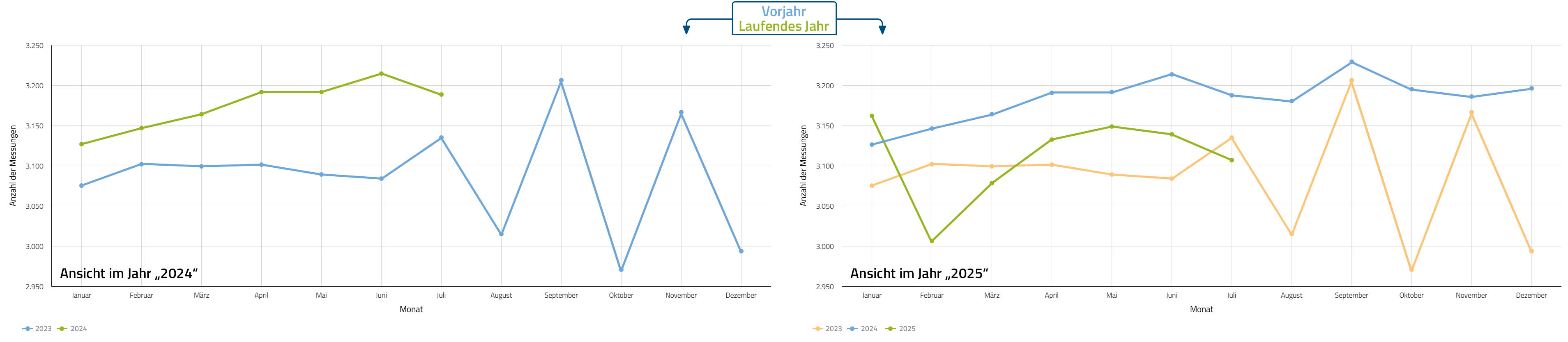 Zum einen kann die Farbgebung in Diagrammen nun über ein separates Attribut gesteuert werden – unabhängig von den angezeigten Beschriftungen, wie z. B. Jahreszahlen oder Statusbezeichnungen. Dadurch wird die visuelle Gestaltung von Diagrammen deutlich flexibler. Dashboards werden außerdem wartungsärmer, konsistenter und automatisierbar: Farben lassen sich dynamisch zuweisen, sodass bei Datenänderungen keine manuellen Anpassungen nötig sind. Gleichzeitig bleiben Dashboards übersichtlich und pflegeleicht, während die Legende weiterhin verständliche Labels wie „2024“ oder „genehmigt“ zeigt – die Farbzuweisung erfolgt zuverlässig über stabile technische Werte. Beispiel: Das aktuelle Jahr wird immer in Orange dargestellt, egal ob es „2024“ oder „2025“ heißt. Auch bei Statusvisualisierungen bleiben Farben stabil, selbst wenn sich Bezeichnungen ändern.