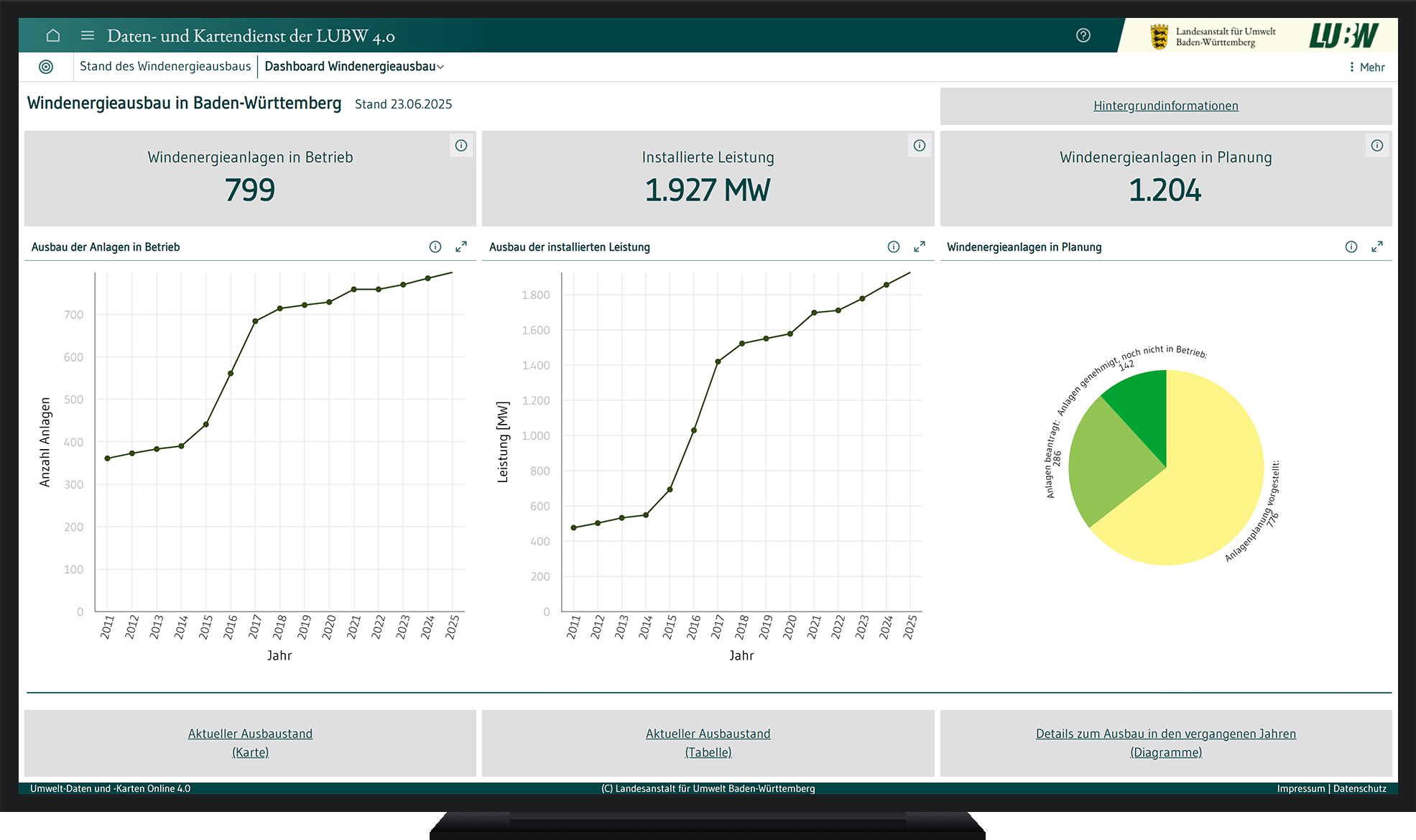 Auf dem Webportal Umwelt-Daten und -Karten Online (UDO) stellt die Landesanstalt für Umwelt Baden-Württemberg (LUBW) der Öffentlichkeit vielfältige Umweltinformationen bereit. Daten aus verschiedenen Fachbereichen und Messprogrammen werden zentral zusammengeführt und über disy Cadenza analysiert. Bürger:innen, Unternehmen und Behörden erhalten Zugriff auf Informationen zu Luftqualität, Lärm, Naturschutz und vielem mehr – präsentiert in interaktiven Karten, Diagrammen, Dashboards und automatisierten Berichten. Dank des integrierten Rollen- und Rechtemanagements können unterschiedliche Zielgruppen gezielt adressiert werden – öffentlich oder intern. Die neue Umgebung UDO 4.0 basiert auf der disy Cadenza-Generation „Workbooks“ und wird langfristig die bisherige Generation „Classic“ ablösen. Die Migration erfolgt themenweise: Erste Inhalte wie Dashboards zu Photovoltaik und Windenergie, Eingriffsregelung, Wasserschutzgebieten, Wassergüte oder Abfalldeponien sind bereits erfolgreich umgesetzt und nutzerfreundlich aufbereitet. Weitere Themen lassen sich jederzeit im Portal ergänzen.
