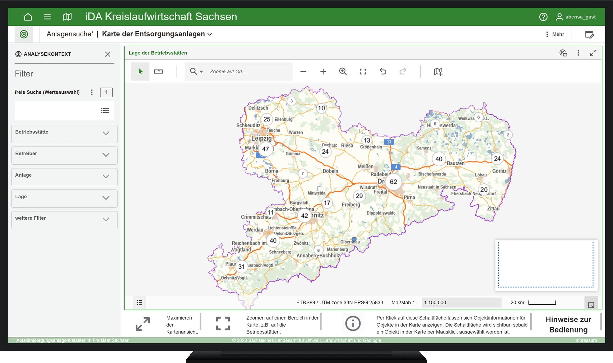 Das Portal ABENSA des Sächsischen Landesamts für Umwelt, Landwirtschaft und Geologie erfüllt nicht nur gesetzliche Informationspflichten, sondern bietet Bürger:innen, Behörden und Entsorgungsunternehmen einen klaren Überblick über Abfallentsorgungsanlagen. Dafür kombiniert ABENSA eine interne Fachanwendung zur behördlichen Steuerung mit einer öffentlichen Informationsplattform - Effizienz trifft Transparenz.