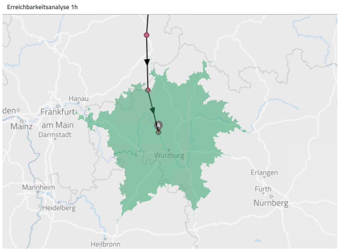 Die Flugzeit nutzt der Weihnachtsmann sinnvoll: Ausgehend von Rudolfs letztem Standort berechnet er mit disy Cadenza die Erreichbarkeiten. So kann er sehen, in welchem maximalen Umkreis Rudolf sich aufhalten könnte.
