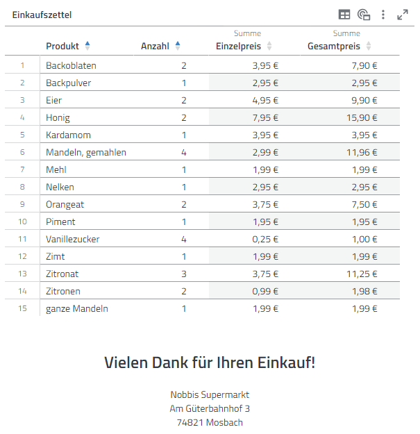Bei dem zerknüllten Papier handelt es sich um einen Kassenzettel mit Zutaten für traditionelle Lebkuchen. Ganz unten steht die Adresse des Supermarkts.