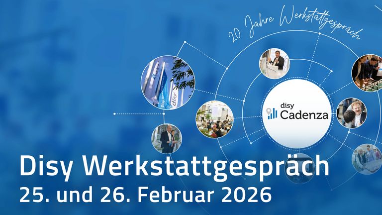 Das Disy-Werkstattgespräch feiert 2026 sein 20. Jubiläum! Freuen Sie sich am 25. und 26. Februar auf zwei Tage voller Austausch, Inspiration und Praxisbeispiele, die zeigen, wie Sie mit disy Cadenza den souveränen Umgang mit Daten in Ihrer Organisation fördern.