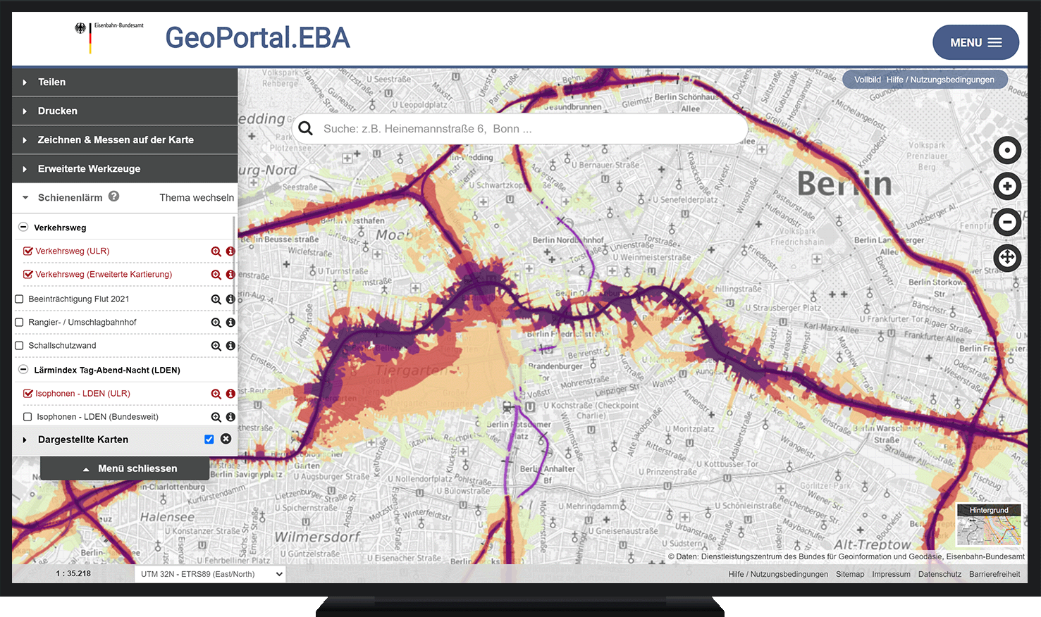 Das Eisenbahn-Bundesamt (EBA) ist dafür zuständig, im Fünf-Jahres-Rhythmus, die Lärmkarten für die Schienenwege von Eisenbahnen des Bundes nach den Vorgaben der Umgebungslärmrichtlinie (2002/49/EG) auszuarbeiten. Die Lärmkartierung, die für alle Mitgliedstaaten nach gemeinsamen Bewertungsmethoden ermittelt wird, soll die Belastung durch Umgebungslärm berechnen und die Öffentlichkeit darüber informieren. Sie dient auch als Grundlage für die Lärmaktionsplanung. Die Ergebnisse der abgeschlossenen Lärmkartierung Runde 4 wurden am 30.06.2022 veröffentlicht und stehen im Geoportal des EBA bereit. Das Konsortium der Unternehmen Disy, AFRY und SoundPLAN hat gemeinsam neben Runde 4 auch bereits die Kartierungsrunden 2 und 3 mit dem EBA erfolgreich umgesetzt.