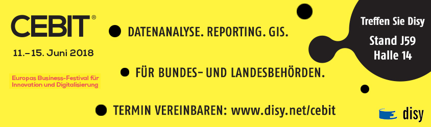 “We will be represented at CEBIT this year with our own exhibition stand and will be showing what solutions for reporting and data analysis in modern public authorities can look like,” says Disy Managing Director Claus Hofmann. “These solutions are based on Cadenza, the software developed by ourselves for data analytics, reporting and GIS, and which has been awarded the seal of quality Software Made in Germany by the BITMI.”
