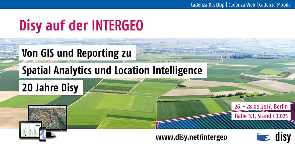 Vom 26. bis 28. September 2017 können sich die Besucher in Halle 3.1 am Stand C3.025 über die aktuellen Highlights aus dem Karlsruher Software- und Beratungshaus informieren. Seit der Gründung vor 20 Jahren steht Disy wie kein anderes Unternehmen für GIS und Reporting „made in Germany“. Mit der Cadenza-Plattform hat Disy eine leistungsstarke Software entwickelt, die als Kerntechnologie in zahlreichen räumlichen Berichtssystemen, landesweiten Datenportalen, Fachanwendungen und mobilen Lösungen im Einsatz ist. Den INTERGEO-Besuchern werden die Highlights der brandneuen Cadenza-Version ebenso gezeigt wie umgesetzte Kundenprojekte. So bekommen die Besucher eine konkrete Vorstellung von der Vielseitigkeit der Lösungen und den Fachbereichen, in denen Disy aktiv ist – vom Umwelt- und Verbraucherschutz, der Land- und Forstwirtschaft bis hin zur Inneren Sicherheit. Die Nutzer der innovativen Disy-Lösungen können so ihre Geo- und Sachdaten effizient für die tägliche Arbeit nutzen – inklusive der mobilen Datennutzung auf Smartphones.